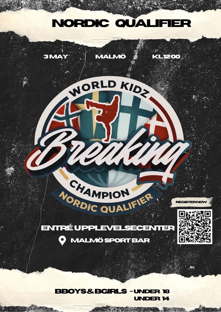 Söndagen den 3 maj 2026 arrangeras World Kidz Breaking Championship – Nordic Qualifier på Entré Upplevelsecentrum i Malmö. Unga breakers från fyra nordiska länder samlas för att tävla om tre platser t… -